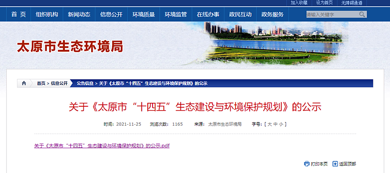 文章來源:地大熱能 發布作者:太原市生態環境局 發表時間:2021-12-22 08:45:06瀏覽次數:3698